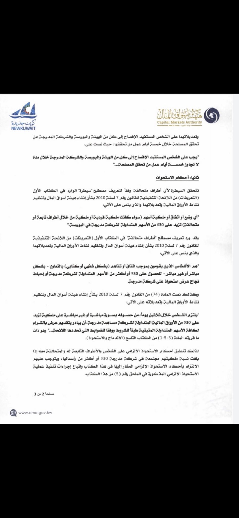 طلال فهد ثنيان الغانم على تويتر هذي صور رد هيئة اسواق المال على استفسار هيئة الاستثمار عن العرض الالزامي و صورة عن قانون تنظيم البنك المركزي خلاصة الموضوع ان الجهات الحكومية ملزمة